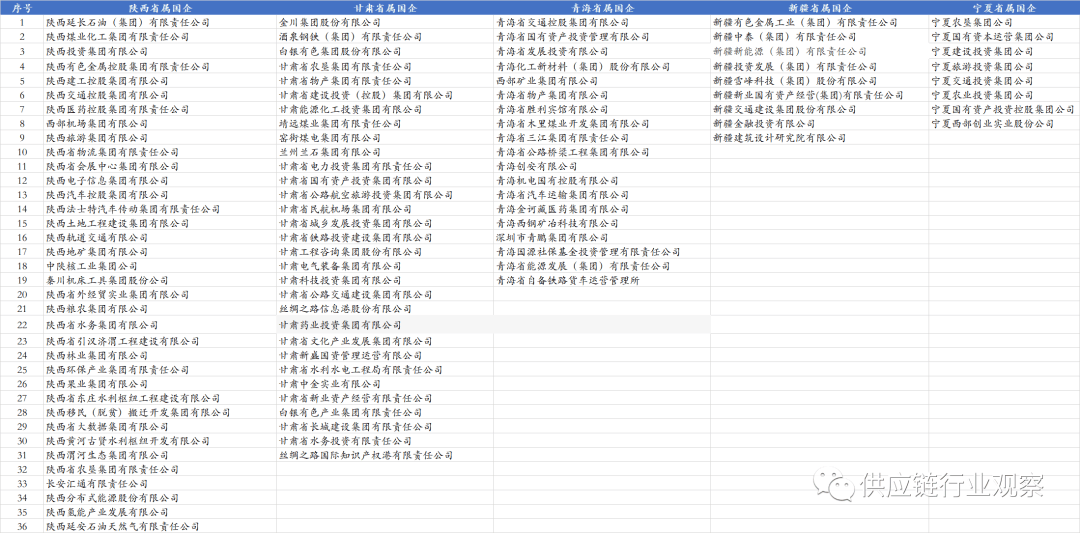 西北5省别离为陕西、甘肃、、新疆和青海。西北5省共具有103家省级国企,此中陕西数量最多36家、甘肃31家、青海19家、新疆9家、8家。