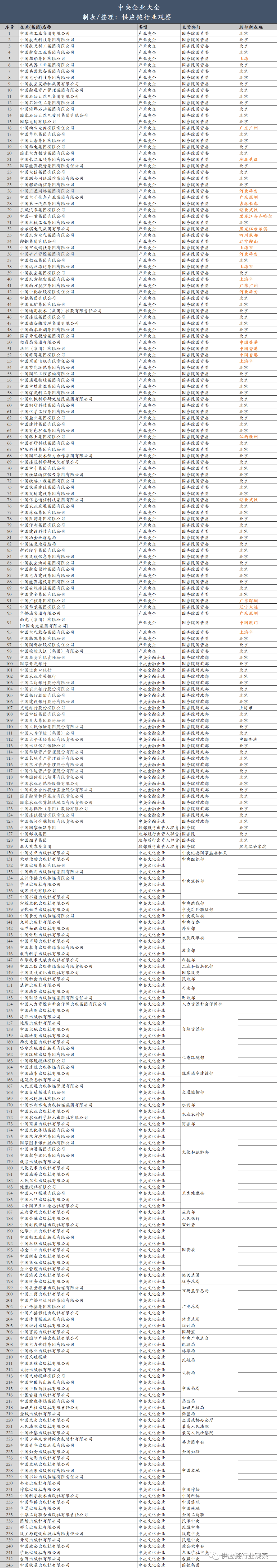 中国最全央企名录及其行政级别划分!