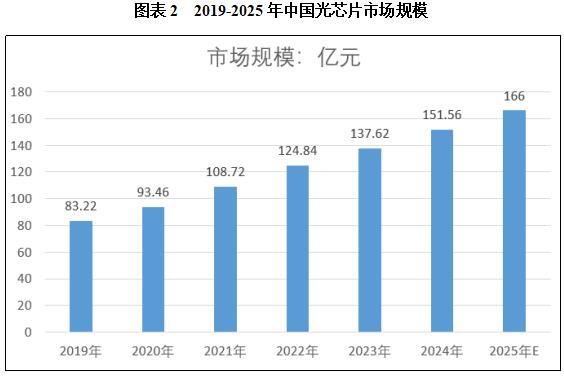 跟着国产替代的加快推进,中国光芯片市场规模持续增加,并展示出强劲的成长势头。2023年中国光芯片市场规模约为137。62亿元,较上年增加10。24%;估计2025年中国光芯片市场规模将增加至166亿元。