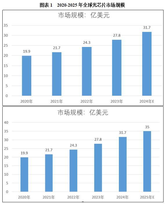 跟着云计较、大数据、人工智能等手艺的快速成长,对高速、高效、低能耗的数据传输需求日益增加,光芯片的市场需求也随之添加,鞭策全球光芯片市场规模持续扩大。2023年全球光芯片市场规模约27。8亿美元,较上年增加14。4%;估计2025年全球光芯片市场规模将达到35亿美元。