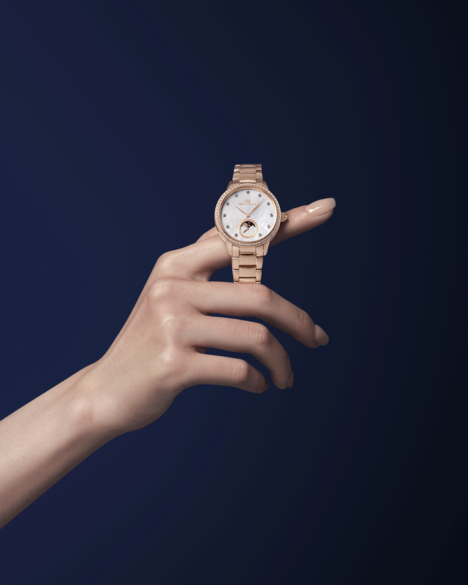 宝珀月亮佳丽系列,这一璀璨精明标时计杰做,犹如夜空中最温柔的守望者,以其奇特的美学取精深工艺,注释了女性独有的优美取力量。该系列灵感源自陈旧传说中的月之,每一枚手表都仿佛承载着月光的奥秘取浪漫,悄悄环抱于佩带者的腕间,讲述着关于时间、斑斓取胡想的故事。设想中,宝珀巧妙地将圆润流利的表壳取精美的表盘融为一体,表盘之上,或镶嵌着闪烁的钻石,或以细腻的月相显示勾勒出银盘的盈亏变化,仿佛一幅幅微型天文画卷,让人沉浸于那抹静谧而深远的月光之中。表带则采用了柔嫩贴合的材质,无论是文雅的精钢、温润的珍珠母贝,仍是柔滑的小牛皮,无不彰光鲜明显对女性肌肤的细腻关怀取卑沉。手艺层面,宝珀月亮佳丽系列搭载了品牌自从研发的高精度机芯,确保了时间的精准流转,每一秒的跳动都是对杰出制表工艺的致敬。此外,部门格式还融入了复杂功能,如日期显示、动力储蓄等,既满脚了日常佩带的适用性,又不失为一件值得珍藏的艺术品。宝珀月亮佳丽系列不只是时间的记实者,更是女性魅力的意味,它以不凡的创意、精深的工艺,以及那份对夸姣事物逃求的热情,点亮了每一位女性心中的月光,让时间的流转成为一场关于美的旅行,记实射中每一个闪烁而宝贵的霎时。